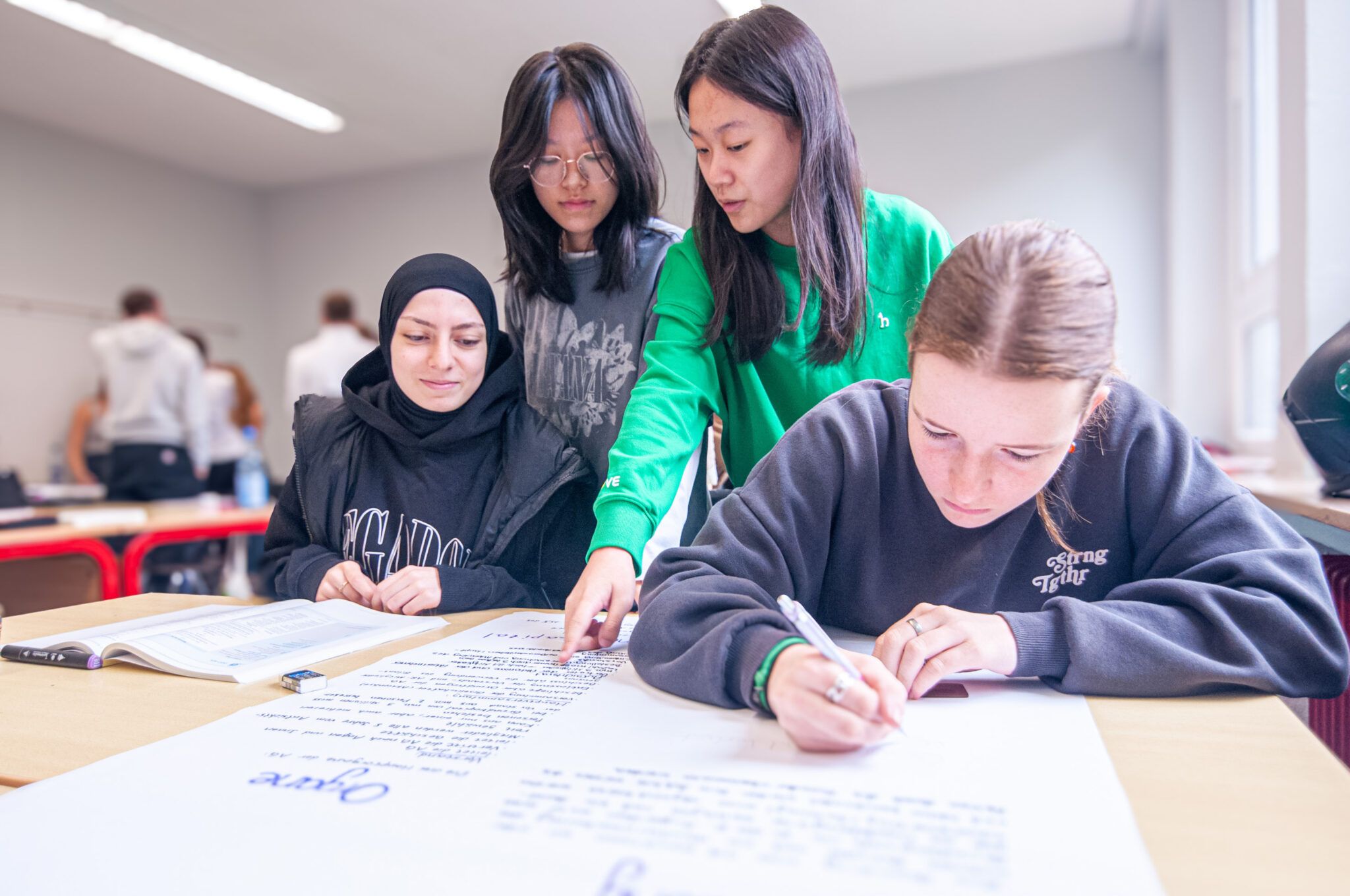 學生在學習項目、運動隊、社團與活動 中一起合作,並在自然情境中使用德文。